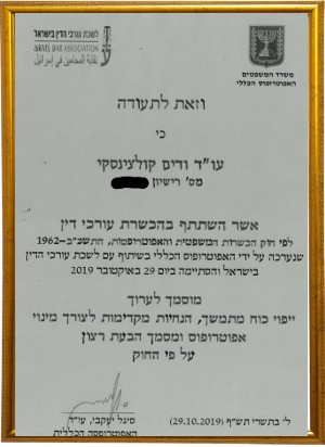 עו"ד קולצינסקי הינו בוגר תואר ראשון במשפטיים (B.LL) עם התמחות בחטיבה המסחרית משנת 2014.